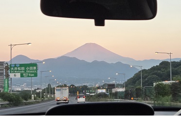 富士山に向かう車の中で目の前に富士山!あそこに登るのか。。。