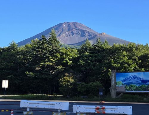五合目までのシャトルバス乗り場からみた富士山頂。近い!!