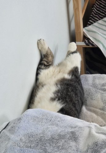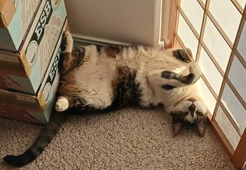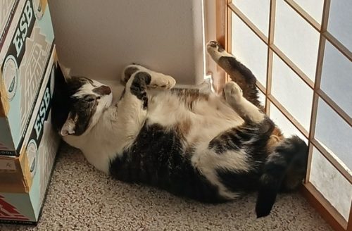 最近は、家の中でいろいろな寝床を自分で選んでいます。