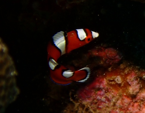 ツユベラの幼魚。体長は3㎝ほど。きれいな紅白色♪