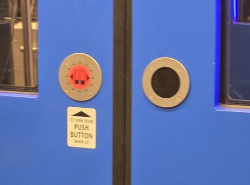 この赤いボタンを押してドアを開けてくださいと書いてあります。