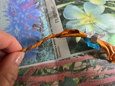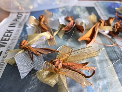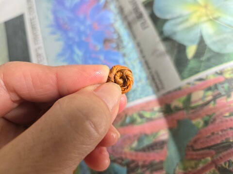 それをくるくるねじって、小さなバラのように仕上げます。